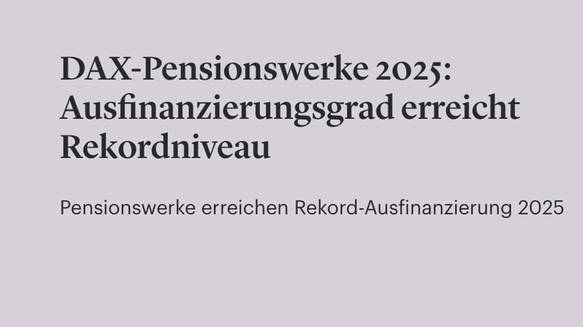 DAX-Pensionswerke 2025: Ausfinanzierungsgrad erreicht Rekordniveau